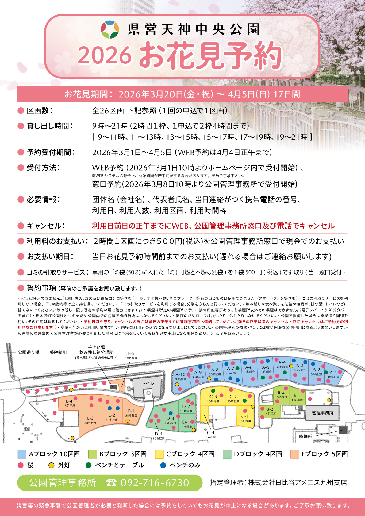 「県営天神中央公園お花見予約受付け」のお知らせ