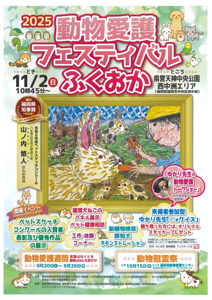 11月2日(日)、県営天神中央公園 西中洲エリア貴賓館前広場において「2025動物愛護フェスティバルふくおか」が開催されます。