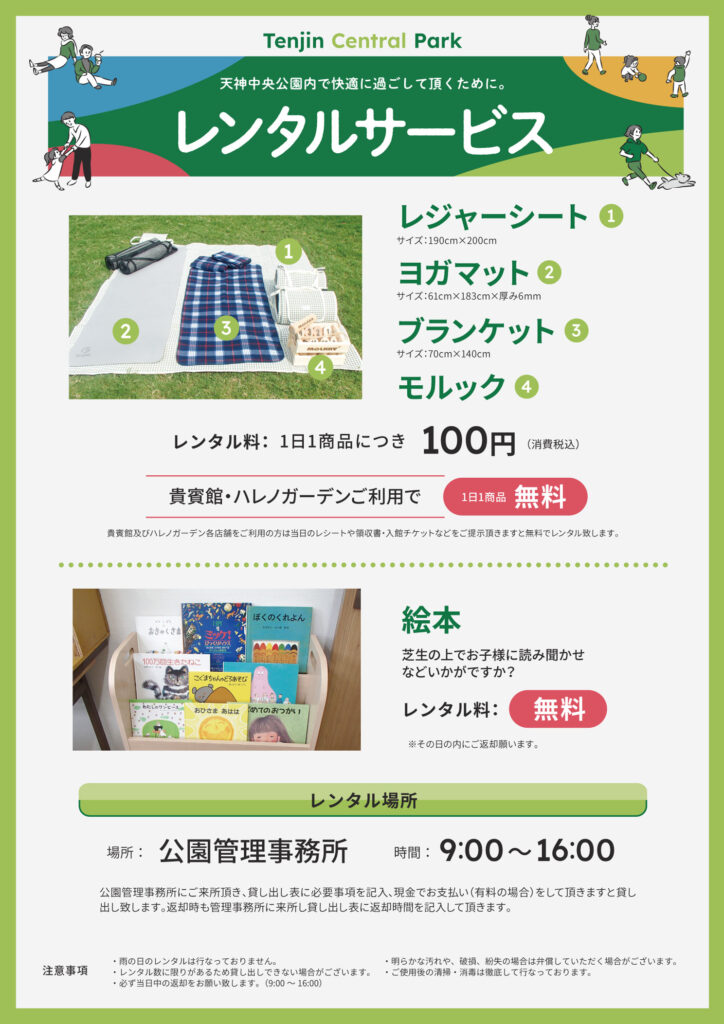 貸出場所:天神中央公園管理事務所(天神エリア)